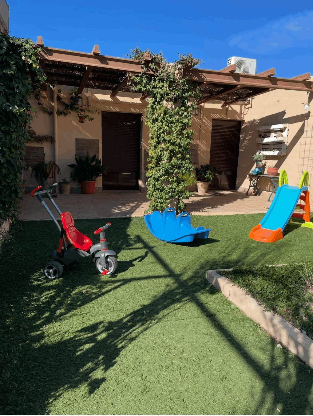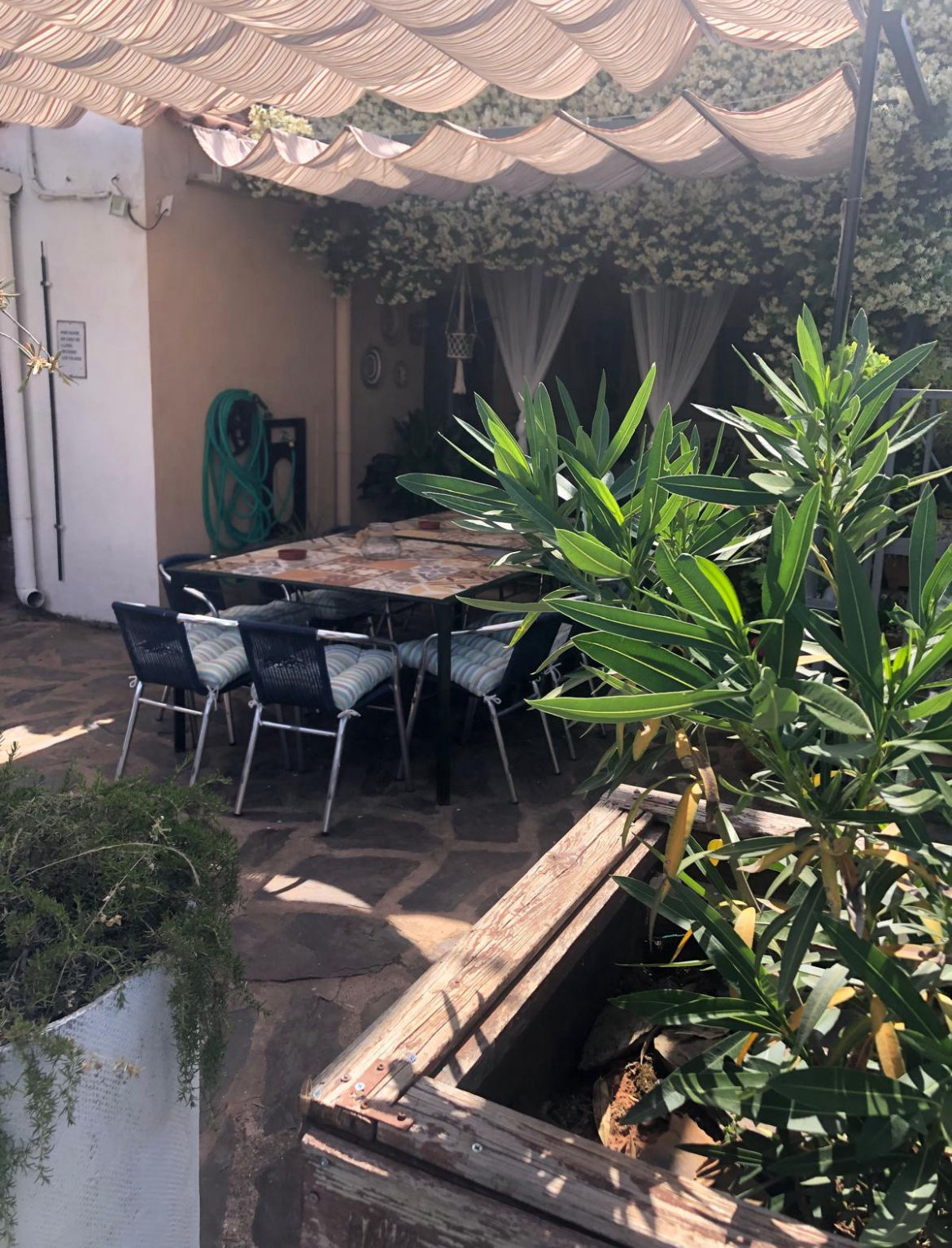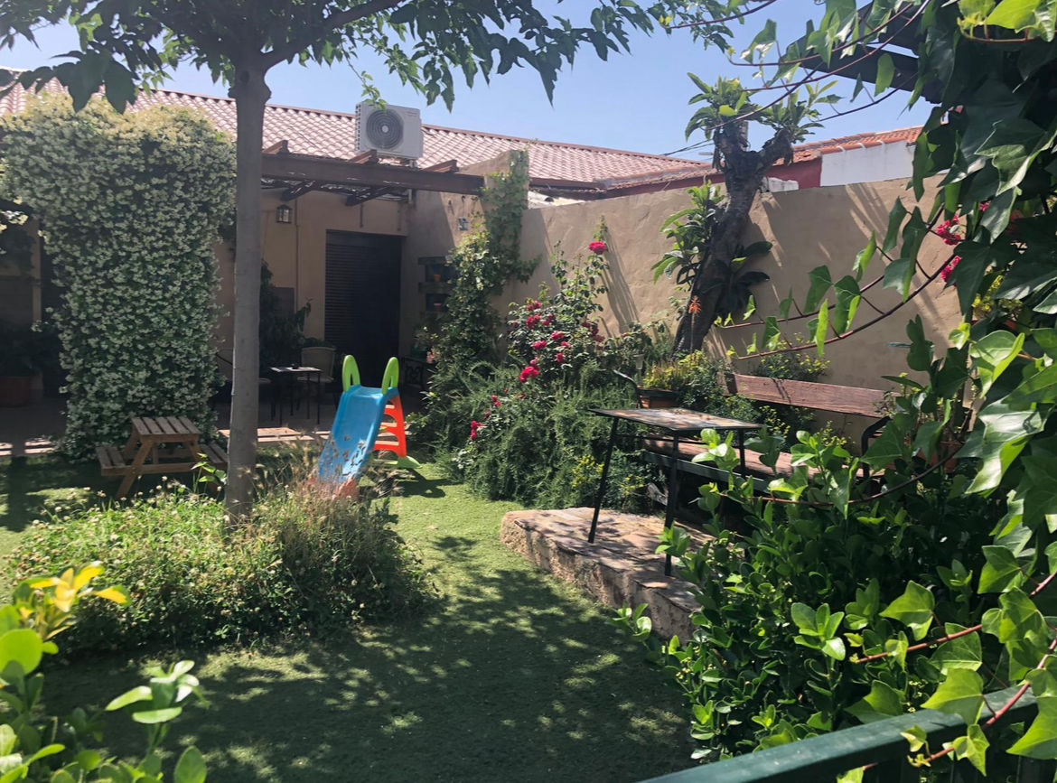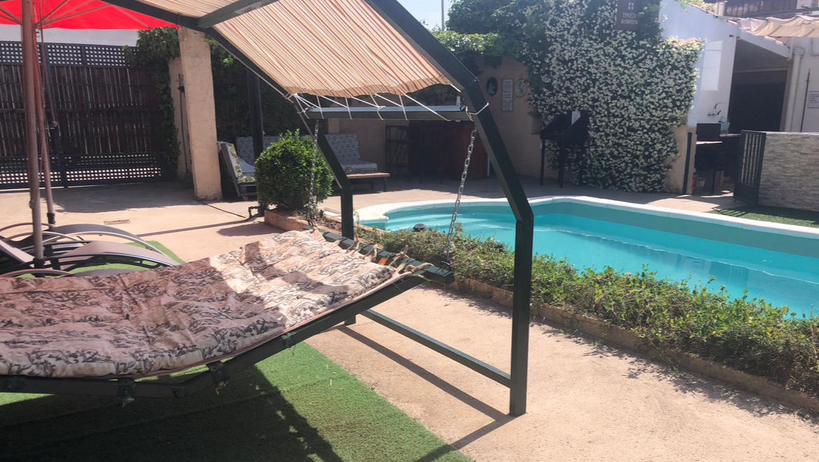 Patio exterior de 500 m2, con cenador, piscina, barbacoa, horno de leña, porche de juegos (futbolín diana electrónica, juego de la rana, juegos de mesas….). Zona de Chill-out con barra y grifo de cerveza